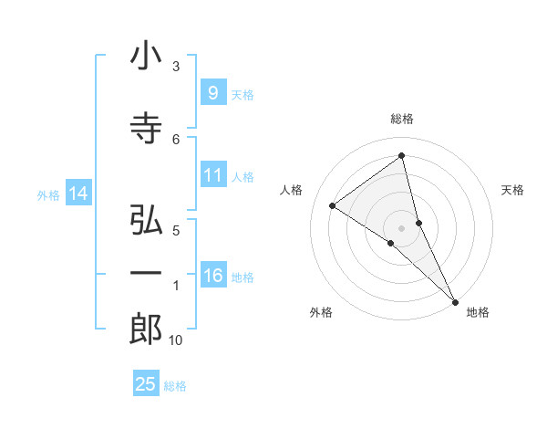 小寺 弘一郎さんの総格は25画の4点!