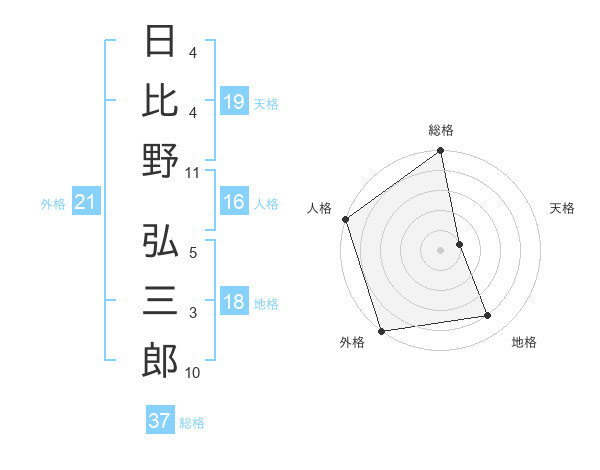 日比野 弘三郎さんを姓名の画数から五運を鑑定