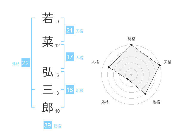若菜 弘三郎さんの総格は39画の5点!
