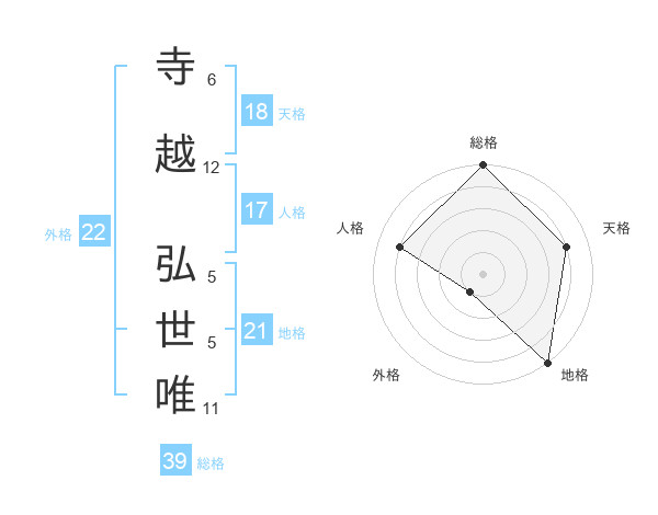 寺越 弘世唯さんを姓名の画数から五運を鑑定