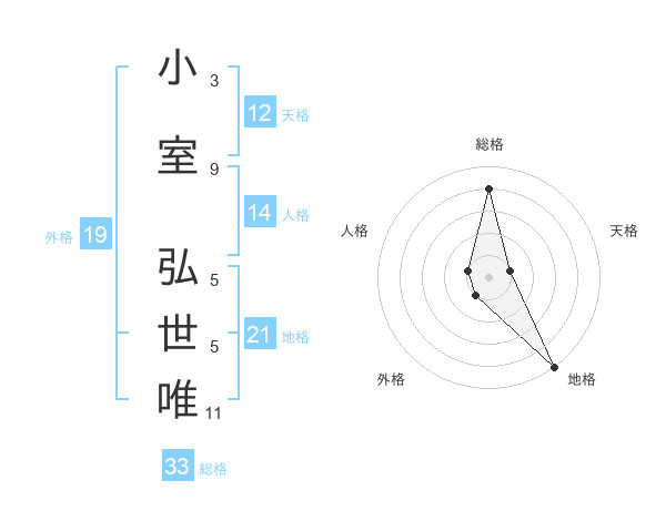 小室 弘世唯さんの地格は21画の5点!
