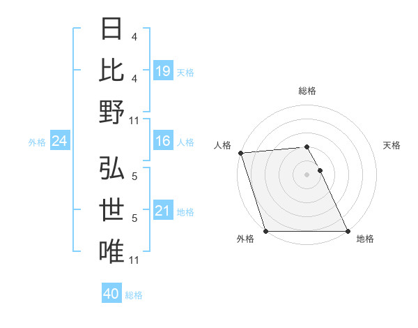 日比野 弘世唯さんを姓名の画数から五運を鑑定