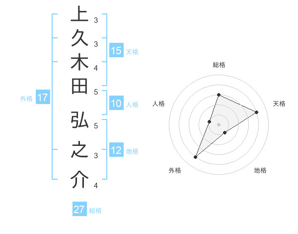 上久木田 弘之介さんを姓名の画数から五運を鑑定