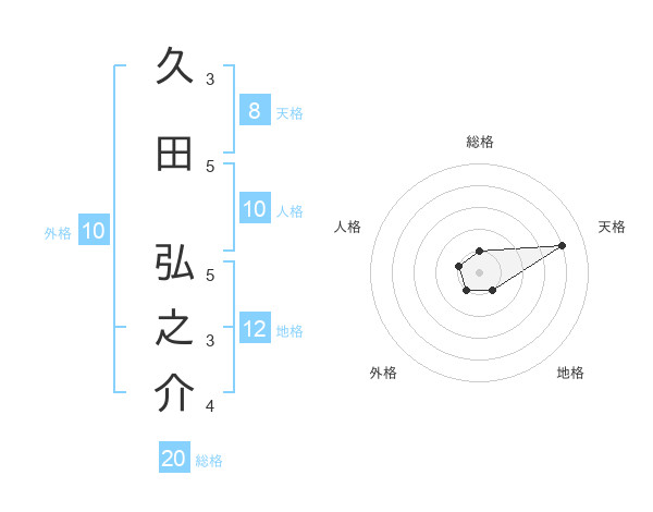 久田 弘之介さんを姓名の画数から五運を鑑定
