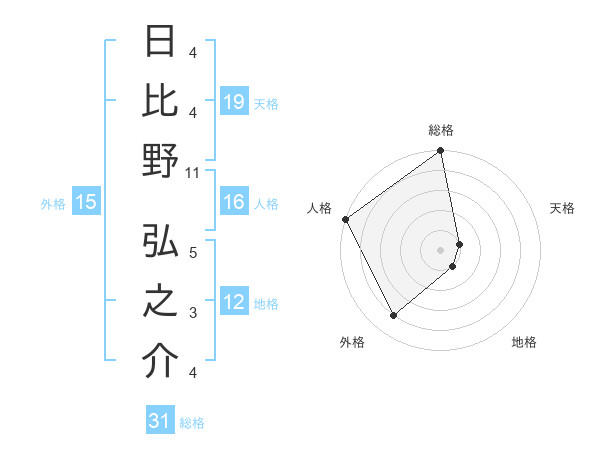 日比野 弘之介さんを姓名の画数から五運を鑑定