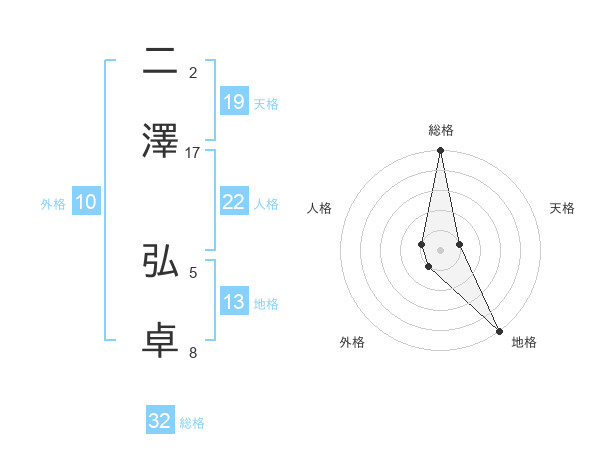 二澤 弘卓さんを姓名の画数から五運を鑑定