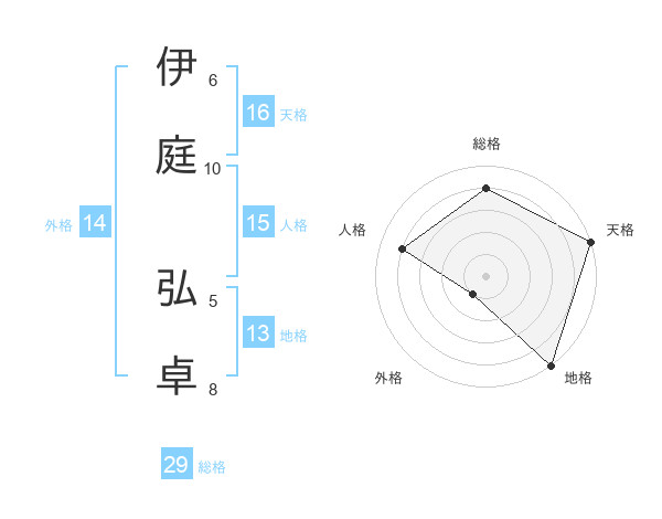伊庭 弘卓さんの天格は16画の5点!