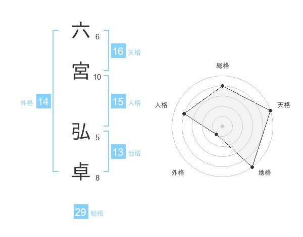 六宮 弘卓さんを姓名の画数から五運を鑑定