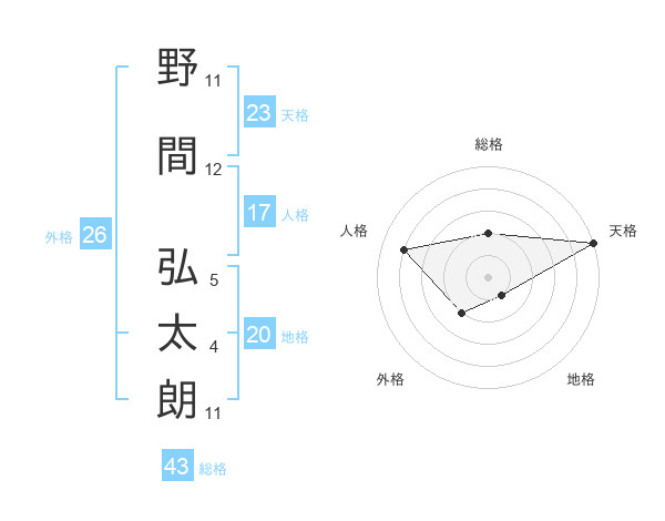 野間 弘太朗さんを姓名の画数から五運を鑑定