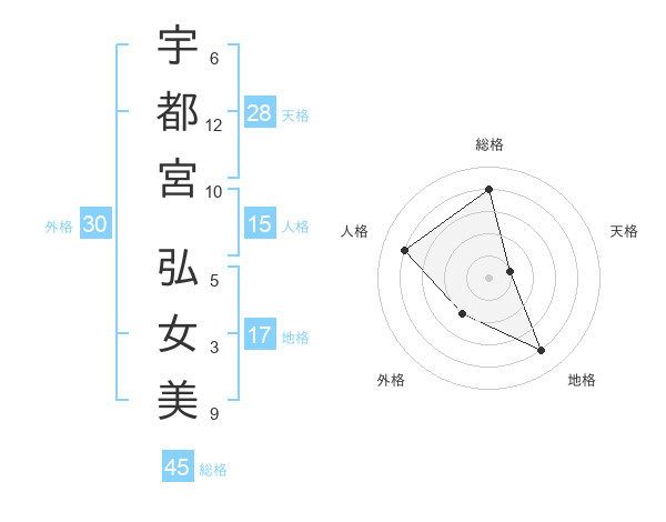 宇都宮 弘女美さんを姓名の画数から五運を鑑定