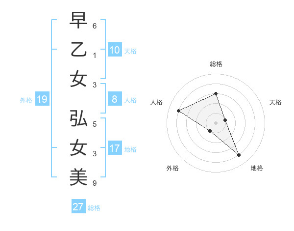 早乙女 弘女美さんを姓名の画数から五運を鑑定