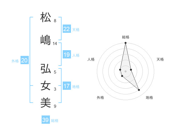 松嶋 弘女美さんを姓名の画数から五運を鑑定