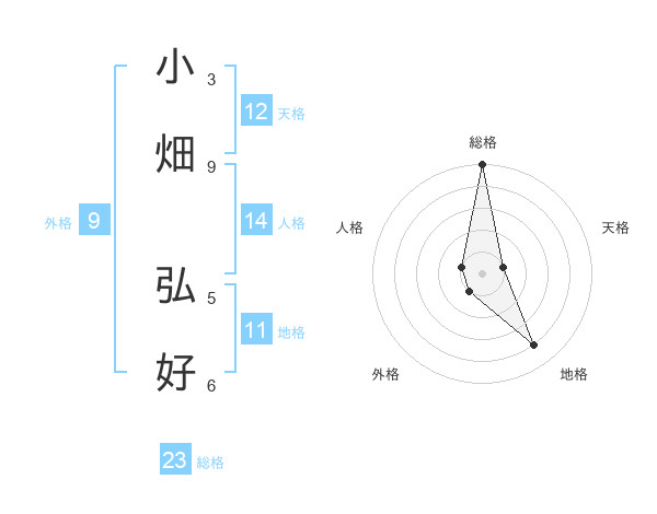 小畑 弘好さんを姓名の画数から五運を鑑定