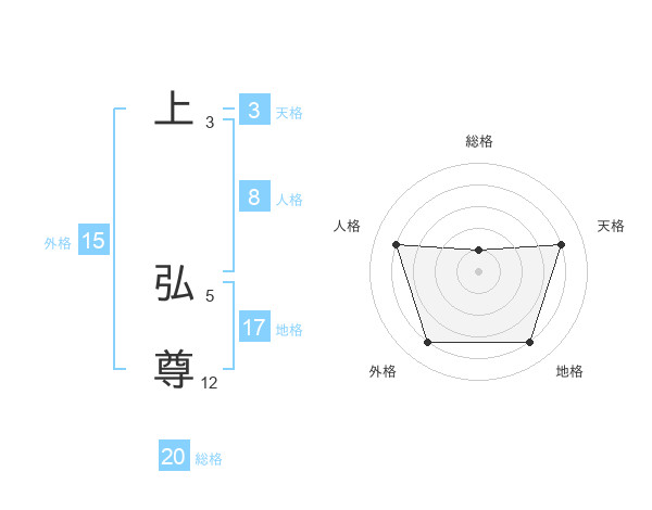 上 弘尊さんの総格は20画の1点!