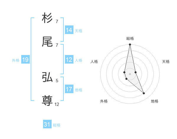 杉尾 弘尊さんの総格は31画の5点!