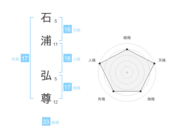 石浦 弘尊さんを姓名の画数から五運を鑑定