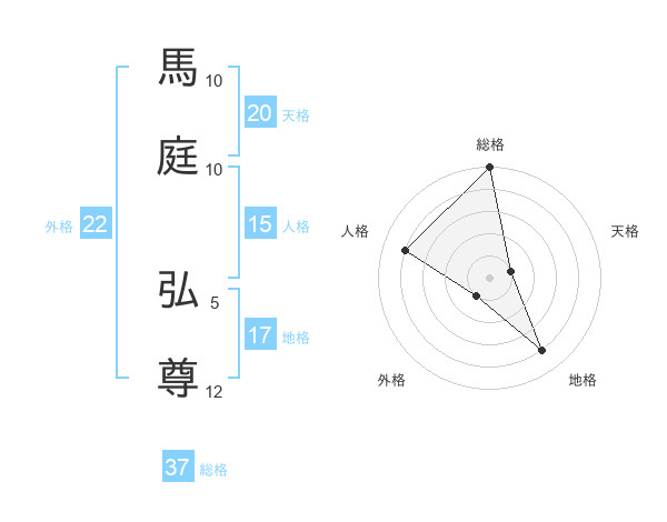 馬庭 弘尊さんの総格は37画の5点!