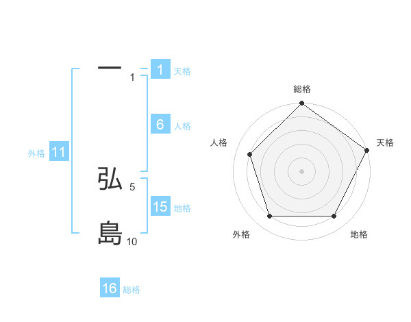 一 弘島さんの総格は16画の5点!