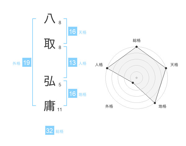 八取 弘庸さんを姓名の画数から五運を鑑定