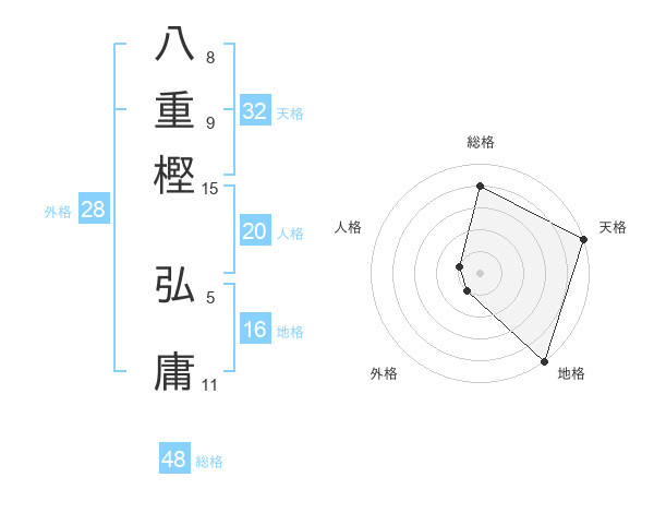 八重樫 弘庸さんの総格は48画の4点!