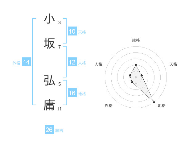 小坂 弘庸さんを姓名の画数から五運を鑑定