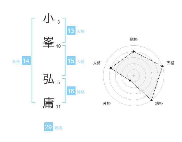 小峯 弘庸さんの天格は13画の5点!
