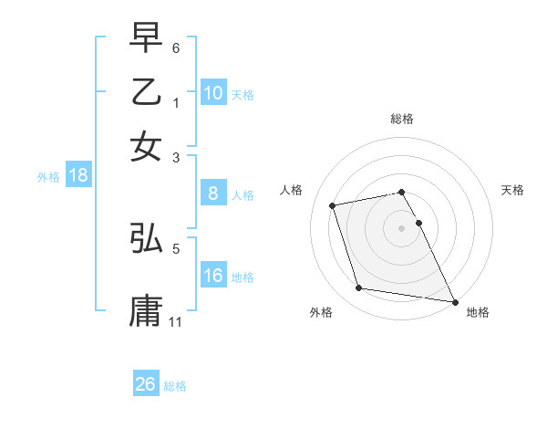 早乙女 弘庸さんを姓名の画数から五運を鑑定