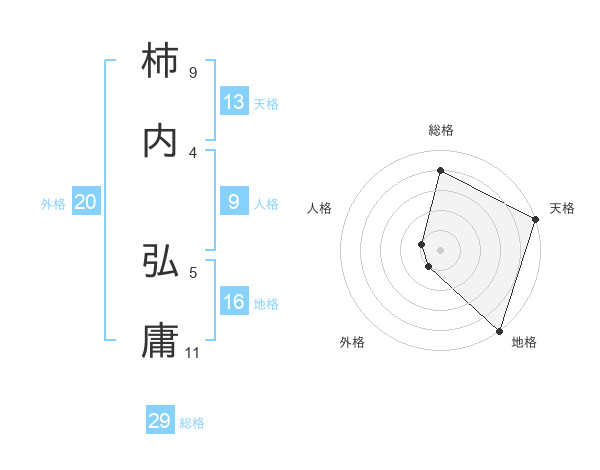 柿内 弘庸さんの総格は29画の4点!