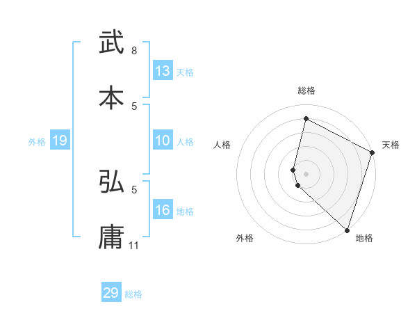 武本 弘庸さんの総格は29画の4点!