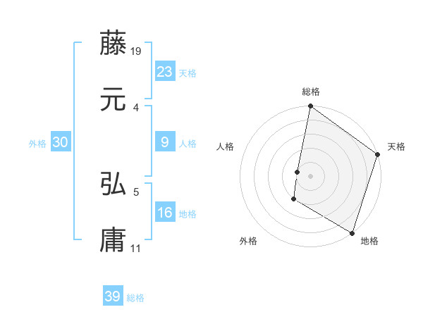 藤元 弘庸さんを姓名の画数から五運を鑑定