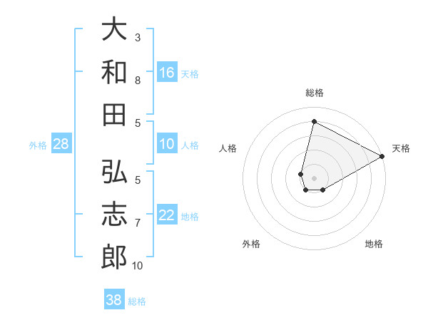 大和田 弘志郎さんの総格は38画の4点!