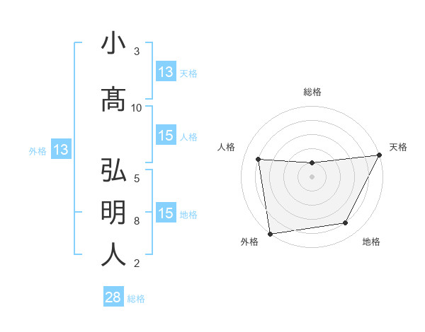 小髙 弘明人さんを姓名の画数から五運を鑑定