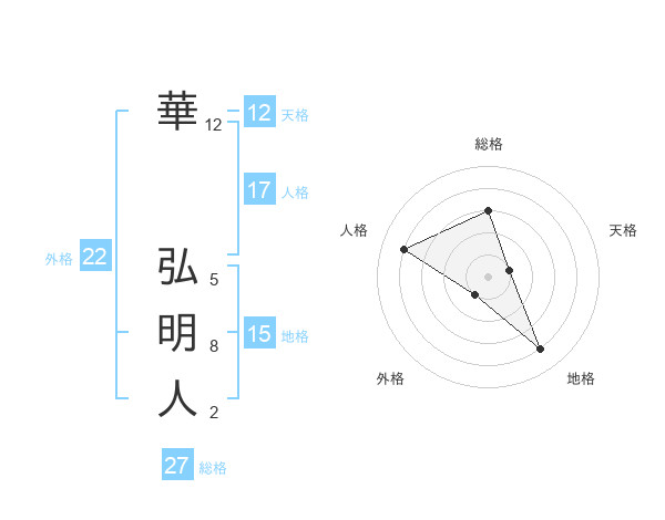華 弘明人さんの外格は22画の1点!