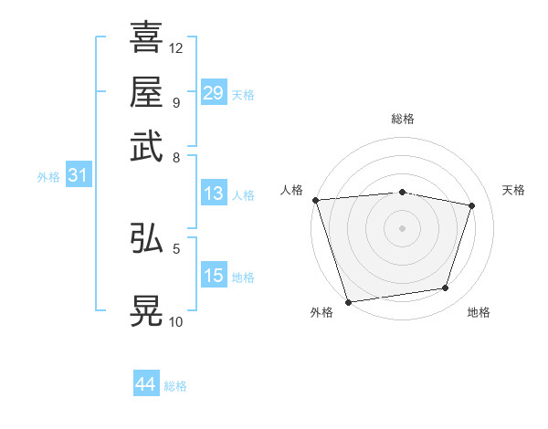 喜屋武 弘晃さんを姓名の画数から五運を鑑定