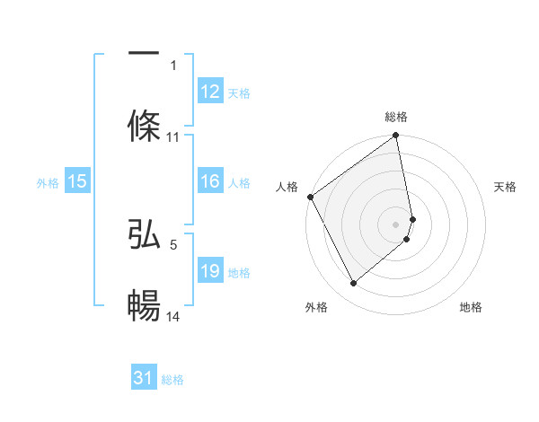 一條 弘暢さんを姓名の画数から五運を鑑定