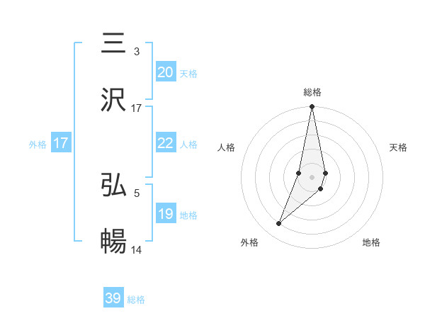 三沢 弘暢さんの総格は39画の5点!