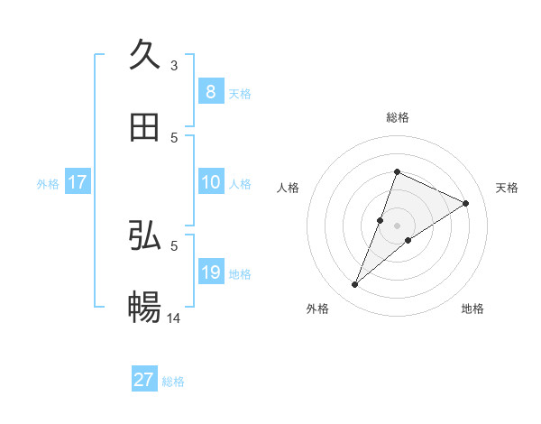 久田 弘暢さんの総格は27画の3点!