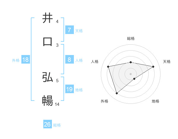 井口 弘暢さんの総格は26画の2点!