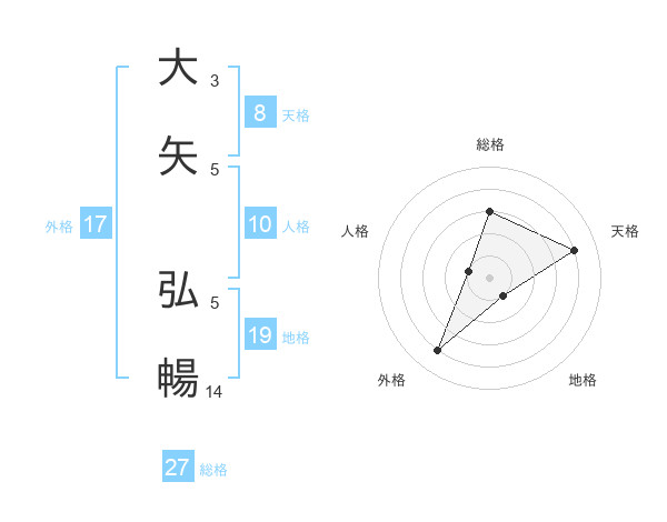 大矢 弘暢さんを姓名の画数から五運を鑑定