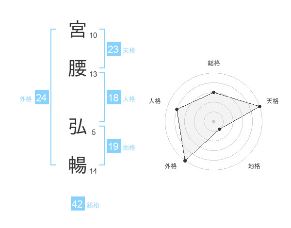 宮腰 弘暢さんを姓名の画数から五運を鑑定