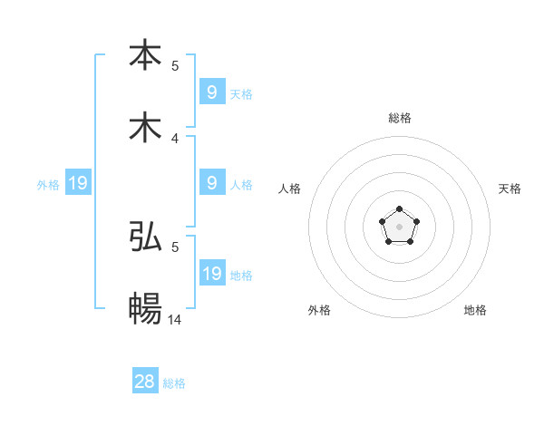 本木 弘暢さんを姓名の画数から五運を鑑定
