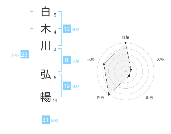 白木川 弘暢さんの総格は31画の5点!