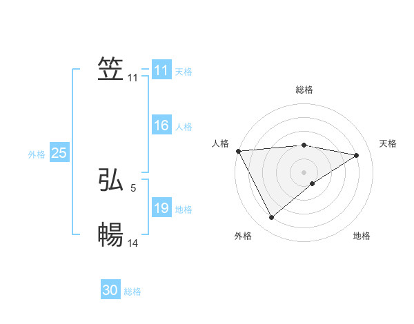 笠 弘暢さんを姓名の画数から五運を鑑定