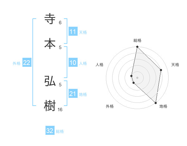 寺本 弘樹さんの総格は32画の5点!