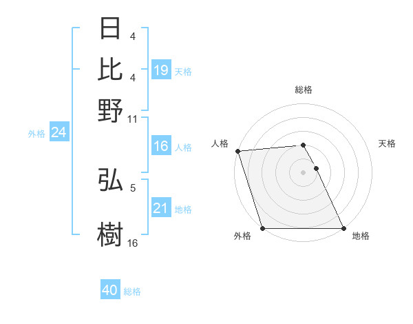 日比野 弘樹さんを姓名の画数から五運を鑑定