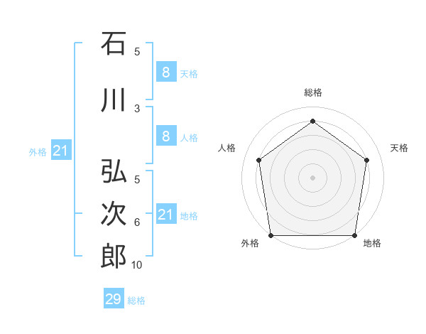 石川 弘次郎さんを姓名の画数から五運を鑑定