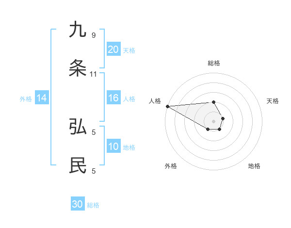 九条 弘民さんの天格は20画の1点!