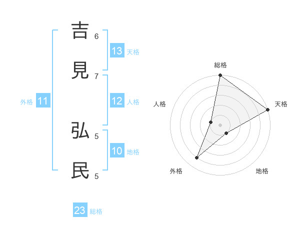 吉見 弘民さんを姓名の画数から五運を鑑定