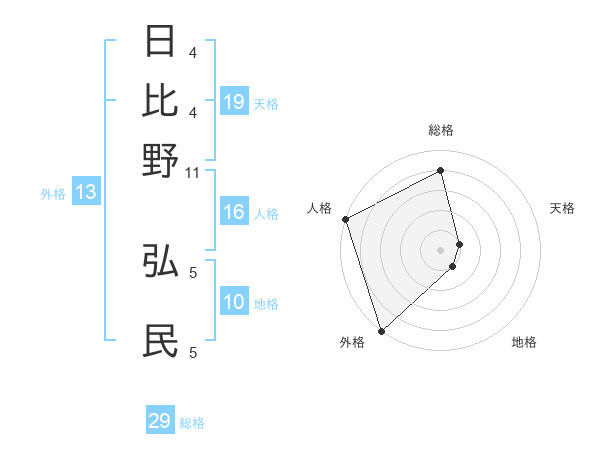 日比野 弘民さんの総格は29画の4点!