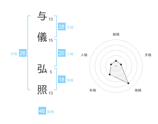 与儀 弘照さんを姓名の画数から五運を鑑定